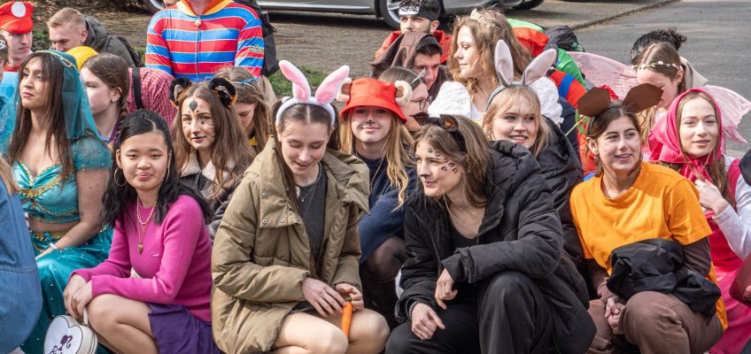 Bald brüten sie wieder über den Abi-Klausuren und bibbern den mündlichen Prüfungen entgegen. Doch zuvor darf noch einmal gefeiert werden. In der letzten Schulwoche vor den Osterferien kamen die künftigen Abiturienten nach wechselnden Themen kostümiert zur Schule und luden die unteren Jahrgänge zu fröhlichen Aktionen in den Pausen ein.