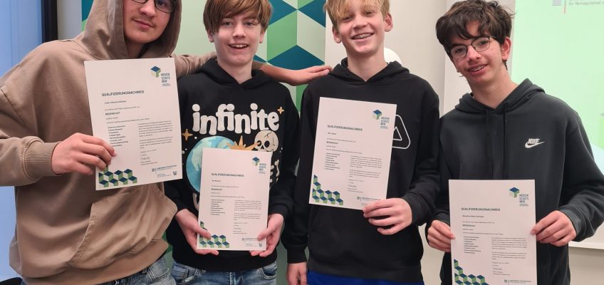 Seit Jahren engagieren sich die Medienscouts der GSG für einen guten Umgang in der digitalen Welt. Um einen offiziellen Rahmen zu schaffen, haben die vier Scouts Ben, Maximilian, Jonas und Max aus der 8c im Herbst/Winter 2025/2026 ihre offizielle Ausbildung an der VHS Dortmund absolviert.