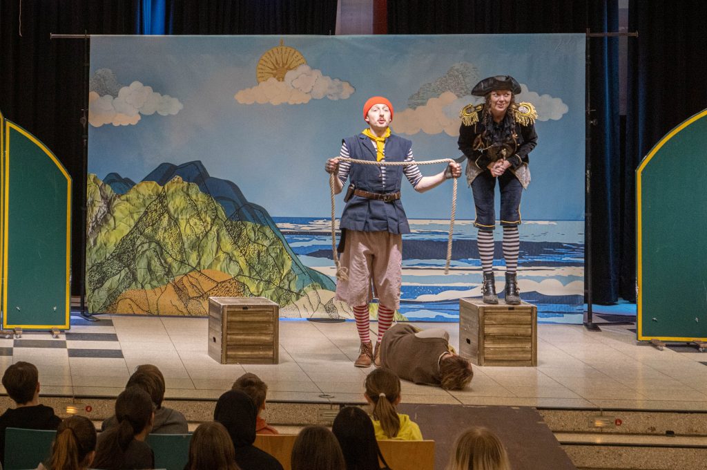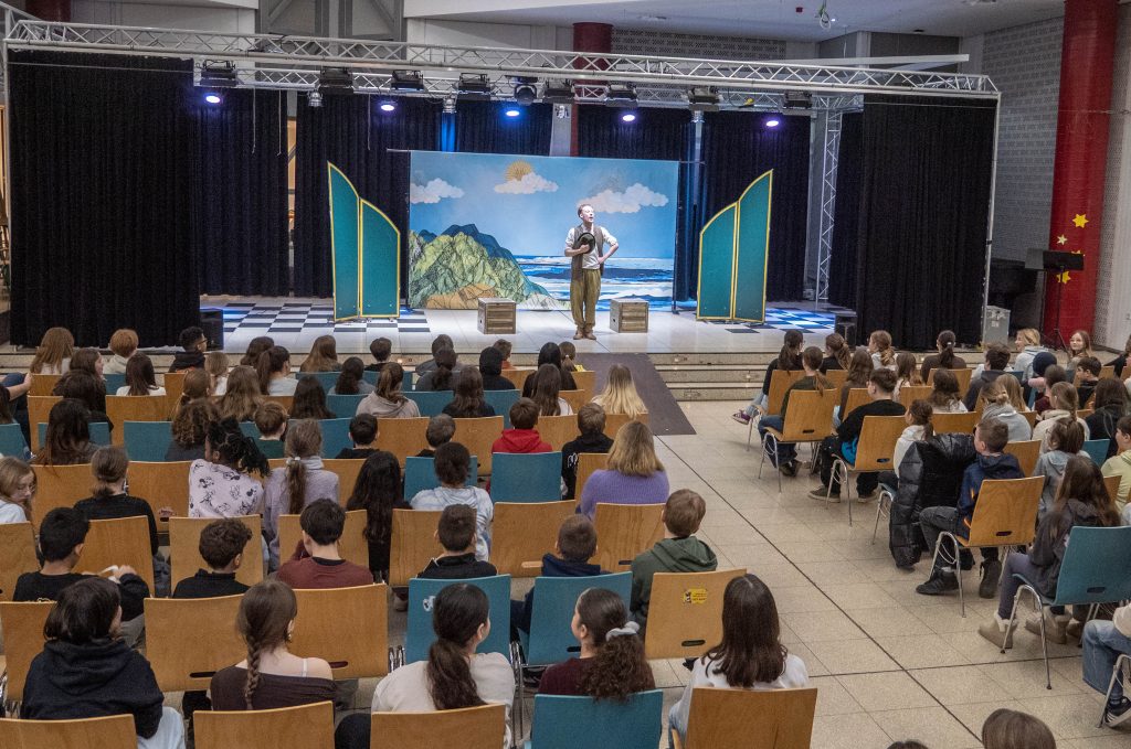 Das White Horse Theatre war wieder einmal zu Gast an der GSG. Die englischsprachige Theatergruppe entführte die Kinder des 6. Jahrgangs am 5 Februar 2026 auf eine aberwitzige Reise mit dem furchterregenden Piraten Black Nick Sharmuck über die sieben Meere dieser Welt. Die turbulente Komödie um den Hirtenjungen Robin, der unfreiwillig auf das Piratenschiff entführt wird erntete Begeisterungsstürme bei dem jungen Publikum, welches von den Schauspielerinnen und Schauspielern mehrfach lautstark in die Handlung miteinbezogen wurde.