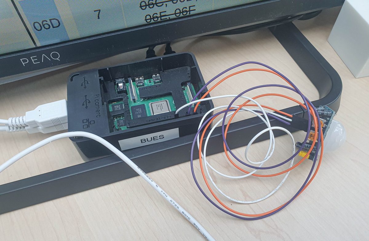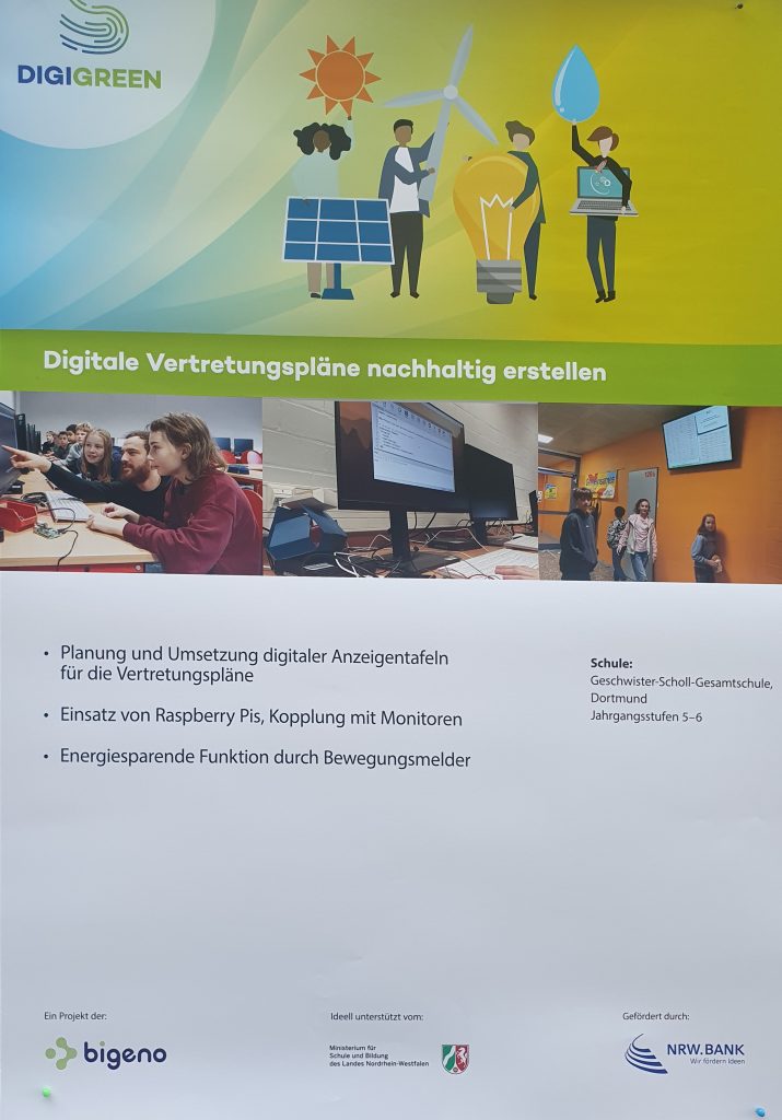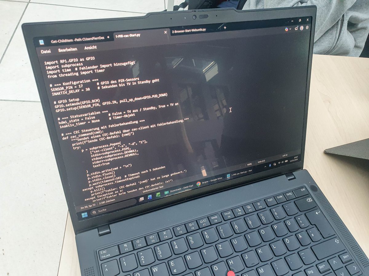 Das Projekt des Teams ist so simpel wie genial: Ein Mini-PC wurde so programmiert, dass der Bildschirm mit dem digitalen Vertretungsplan nur dann Energie verbraucht, wenn er auch wirklich gebraucht wird. Mithilfe eines Bewegungsmelders schaltet sich das Display erst ein, wenn Personen davor stehen.
