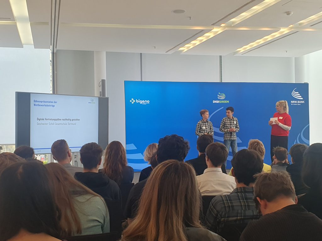 Großer Erfolg für unsere Nachwuchstalente: der DigiTec-Kurs des 5. Jahrgangs präsentierte am 19. März 2026 sein innovatives Energiespar-Projekt beim landesweiten DigiGreen-Wettbewerb in der NRW.BANK.