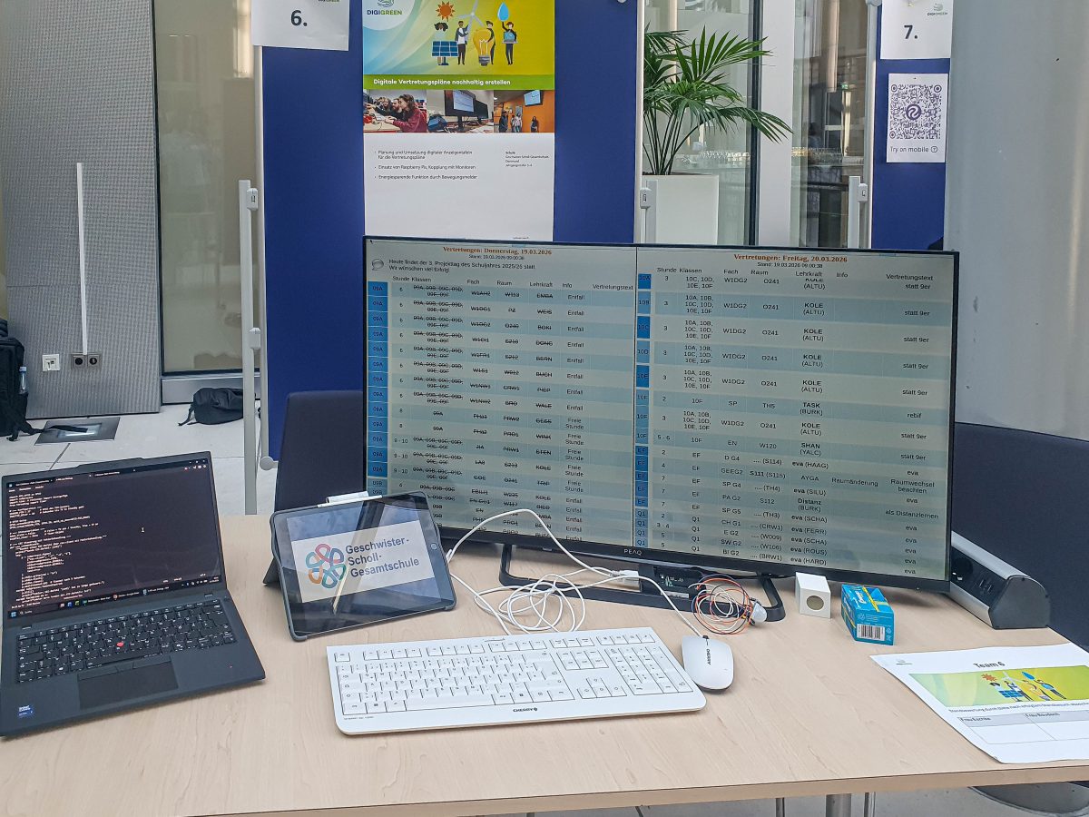 Seit dem Start der Umsetzungsphase im Oktober 2025 haben die Schülerinnen und Schüler unter der Leitung von Herrn Büschke intensiv an ihrer Idee gearbeitet. Ihr Ziel: Die Digitalisierung unserer Schule nachhaltiger zu gestalten.