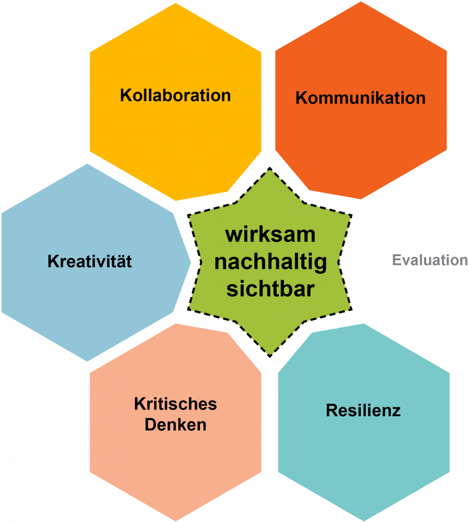 Unsere Unterrichts- und Schulentwicklung zielt auf fünf Kernaspekte: Kollaboration, Kommunikation, Kreativität, Kritisches Denken und Resilienz. Kurz als 4K+R bezeichnet. Nähere Informationen dazu haben wir in einem KI-generierten Video zusammengefasst.